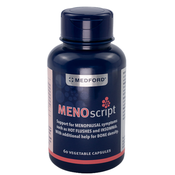 - Medford Meno Script is available in a bottle of 60 capsules. 2. It is designed to support menopausal health. 3. Contains ingredients aimed at alleviating menopausal symptoms and supporting hormonal balance.
