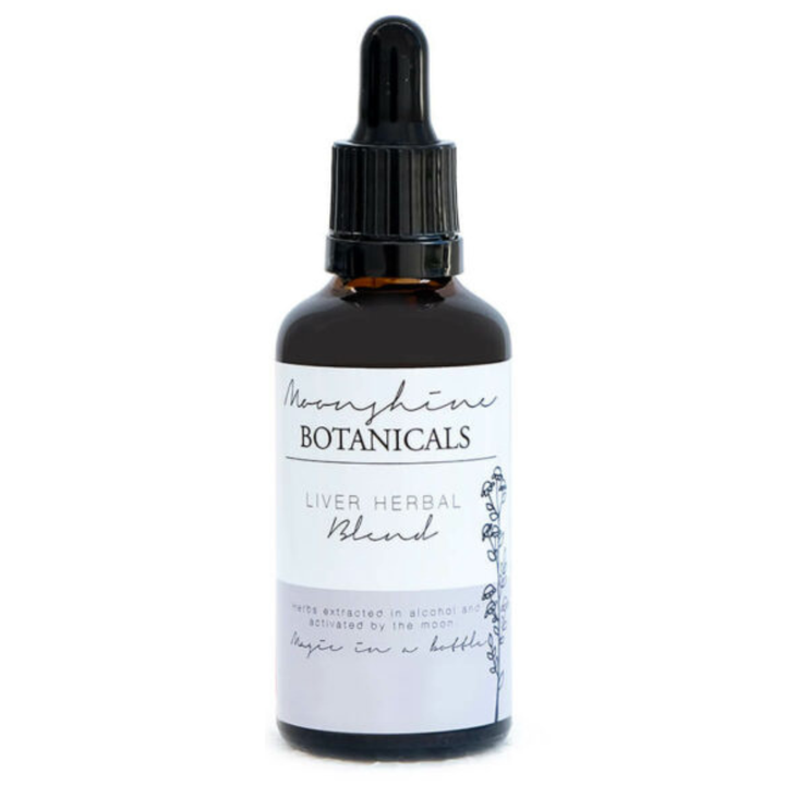 Moonshine Botanicals Herbal Liver Tincture is available in a 50ml bottle. It is formulated with a blend of herbs to support liver health and detoxification. The tincture is designed to promote liver function and overall well-being.