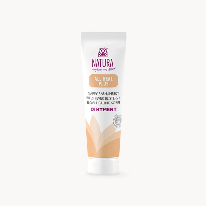 Natura All Heal Plus Ointment is formulated to promote healing of minor cuts, burns, and skin irritations. It comes in a 50g tube for easy topical application. The ointment contains natural ingredients like calendula and arnica for soothing and anti-inflammatory effects.