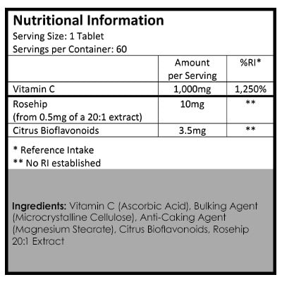 Supports Energy and Reduces Fatigue : Vitamin C helps reduce tiredness and fatigue. Promotes Healthy Skin : Contributes to normal collagen formation for healthy skin. Boosts Immune System : May enhance the body’s natural defenses. 2 Month Supply : Includes 120 tablets for long-lasting use. Enhanced with Bioflavonoids : Supports healthy venous circulation.