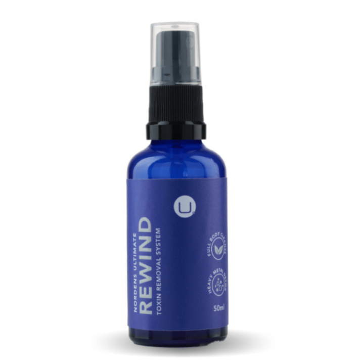 Nordens Rewind Toxin Removal is a liquid supplement designed to support the body's natural detoxification processes. The product comes in a 30 ml bottle and is formulated to help eliminate toxins and promote overall wellness. It contains a blend of natural ingredients known for their cleansing properties, aiming to support liver and kidney function for effective toxin removal.
