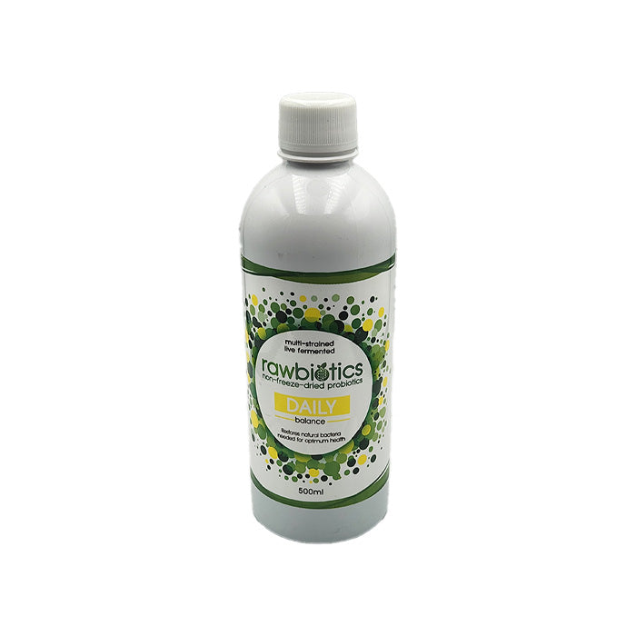 Rawbiotics DAILY is a daily liquid probiotic designed for maintaining optimal digestive health. It's suitable for individuals without existing gut issues who wish to proactively support their gut function and prevent future problems. Additionally, it's beneficial after a course of antibiotics to restore essential good bacteria. Rawbiotics DAILY also includes herbal extracts like Rose Hip, Astragalus, Chamomile, Olive Leaf, Elderberry, and Siberian Ginseng to boost daily energy and overall well-being. This product combines probiotics and herbal ingredients to promote digestive health and general vitality. BENEFITS: Contains 7 Herbal Extracts Rawbiotics contain 14 strains and multiple classes of beneficial live bacteria fermented at body temperature As a result, and unlike pure-culture (freeze-dried) probiotics, Rawbiotics create a comprehensive probiotic that better survives stomach acid Improves the body’s ability to digest food, use nutrition, and stay healthy Restores natural bacteria needed for optimum health 100% natural and GMO free.