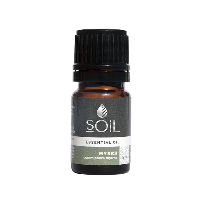 - Soil Conventional Myrrh is available in a 5ml bottle. 2. It is known for its rich, resinous aroma and has been traditionally used for its soothing and anti-inflammatory properties. 3. The oil is used in aromatherapy to support relaxation and enhance emotional well-being.