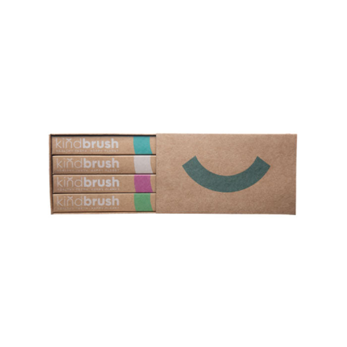One pack contains: 4 x Adult Kindbrush , that means an entire year’s supply! (unless you’re sharing with your family or friends) Available in 5 happy colours (white, green, mint, aqua, pink).
