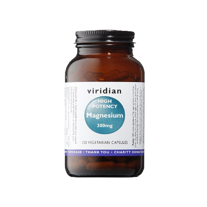- Viridian Hi-Potency Magnesium 300mg is available in a bottle of 30 vegan capsules. 2. Each capsule contains 300mg of magnesium. 3. Supports muscle function, relaxation, and overall nervous system health.